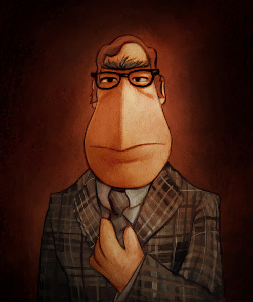 The second piece was the funeral portrait for Gonzo. It was a simple black and white portrait that was used in a sequence that depicted Gonzo’s funeral. This was a ton of fun. I love getting in and scratching out the details of a portrait, and when it is a muppet that is covered in fur there is a lot more detail to cover.