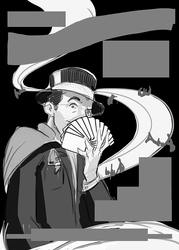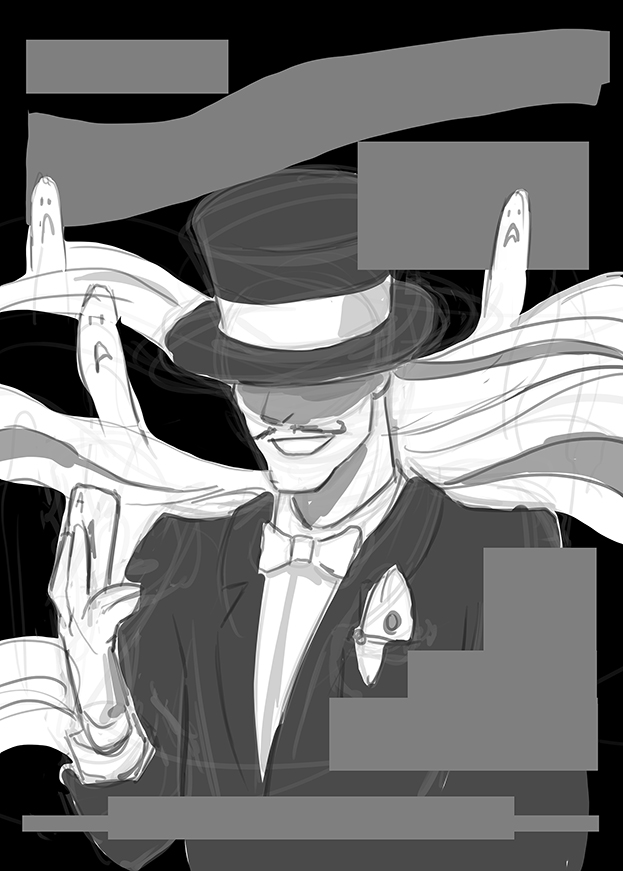 The first piece I created was the MacGuffin poster (I am responsible for the all the art EXCLUDING the text.) We bounced around a few ideas that included clever ways to mask the face of the character so as not to reveal any surprises.